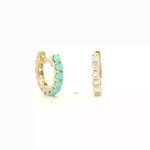 14K Gold Half and Half Turquoise and Diamond Huggie Hoops Earrings
