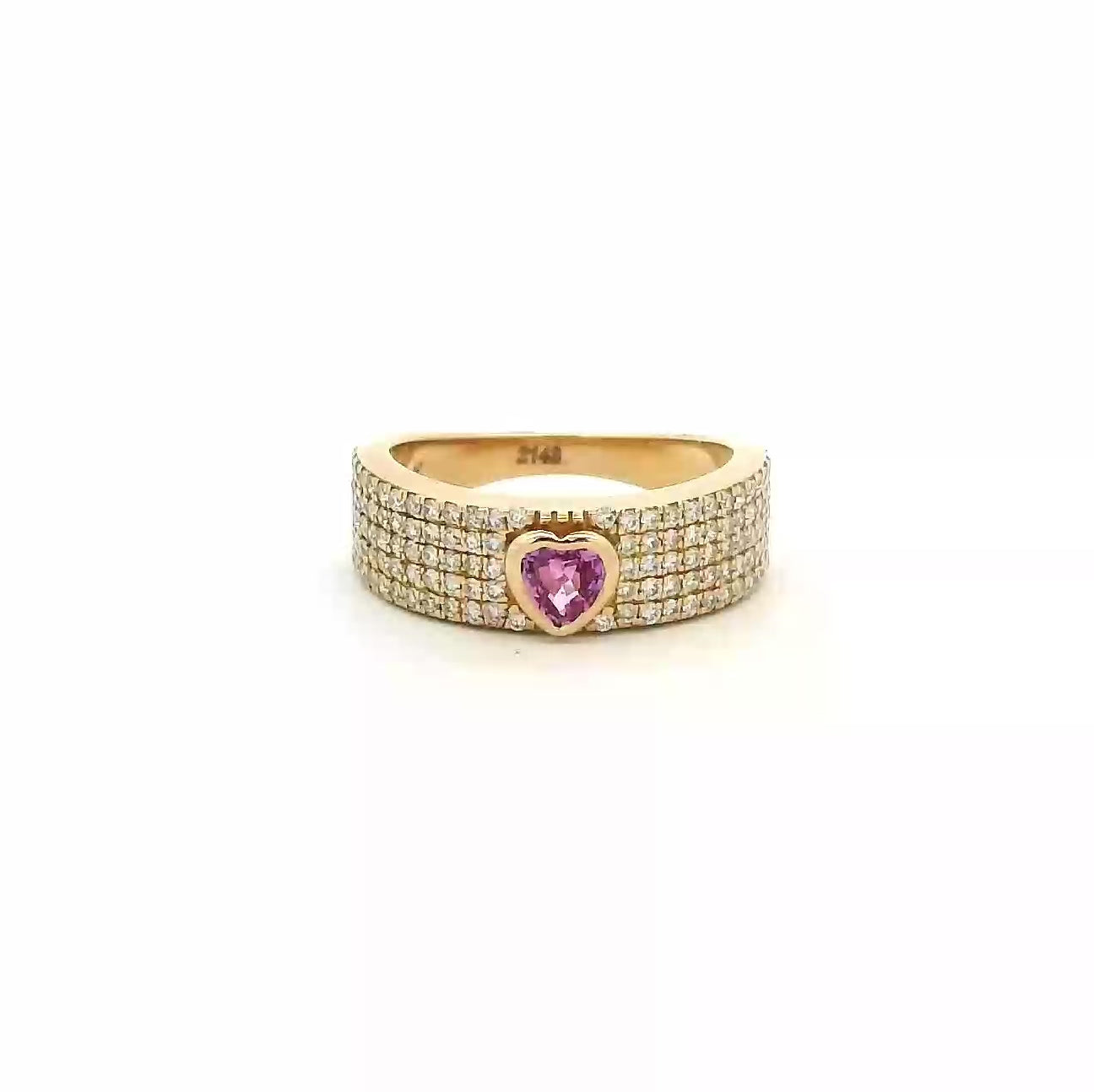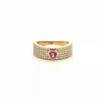 14K & 18K Gold Heart Blue Sapphire and Pave Diamond Ring