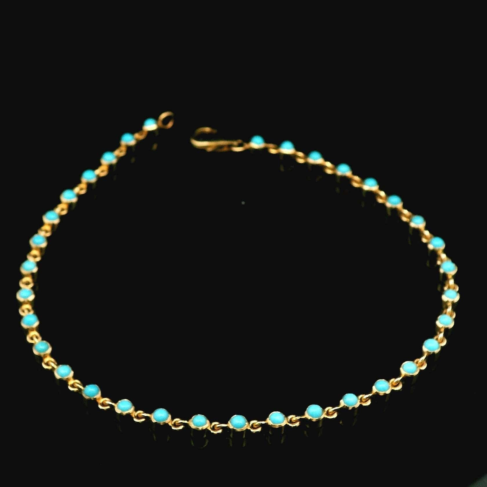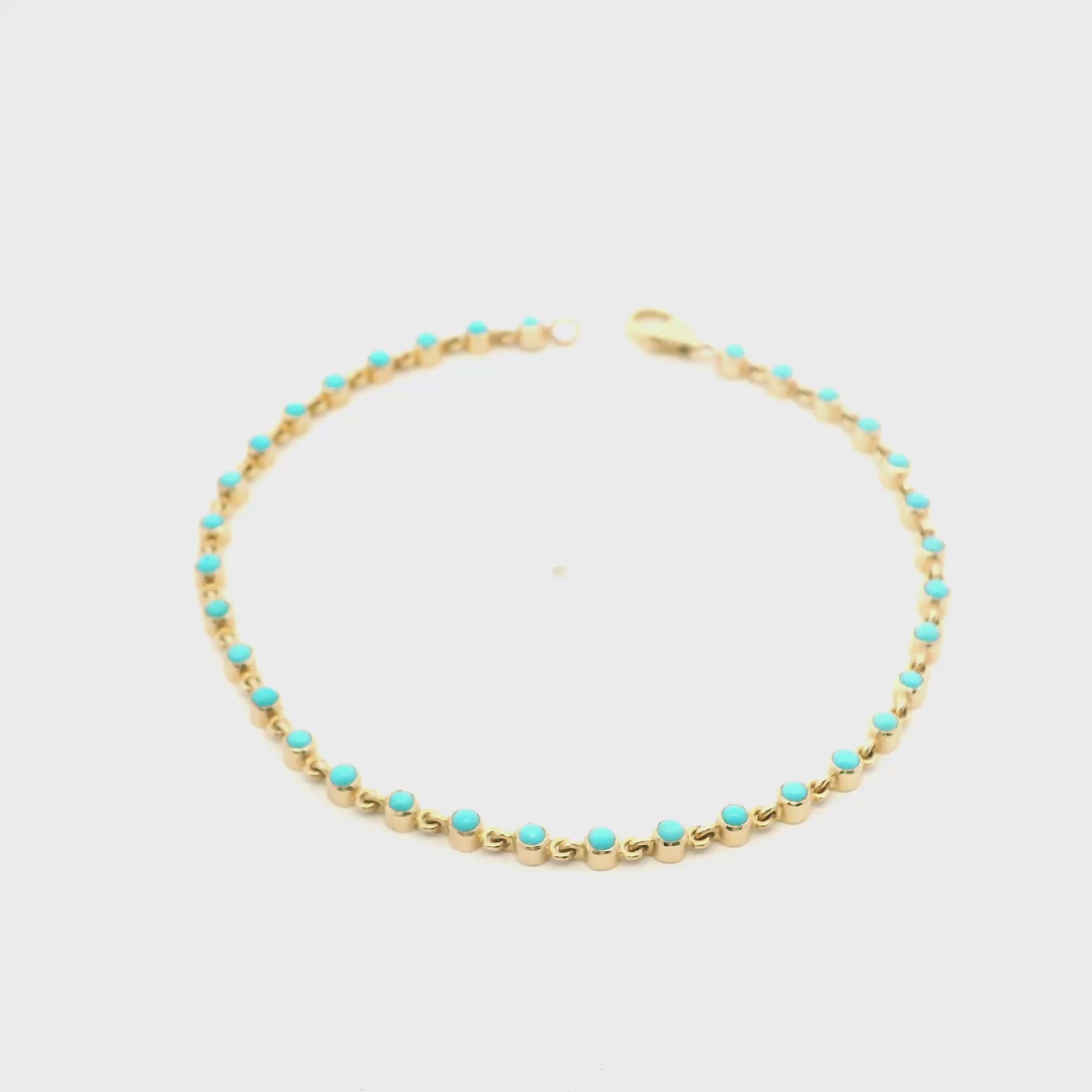 14K Gold Bezel Set Turquoise Tennis Bracelet