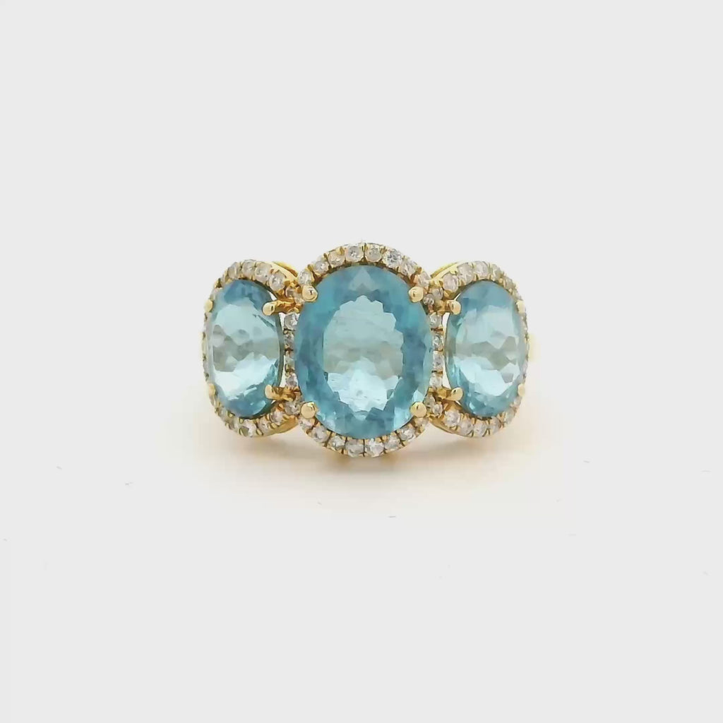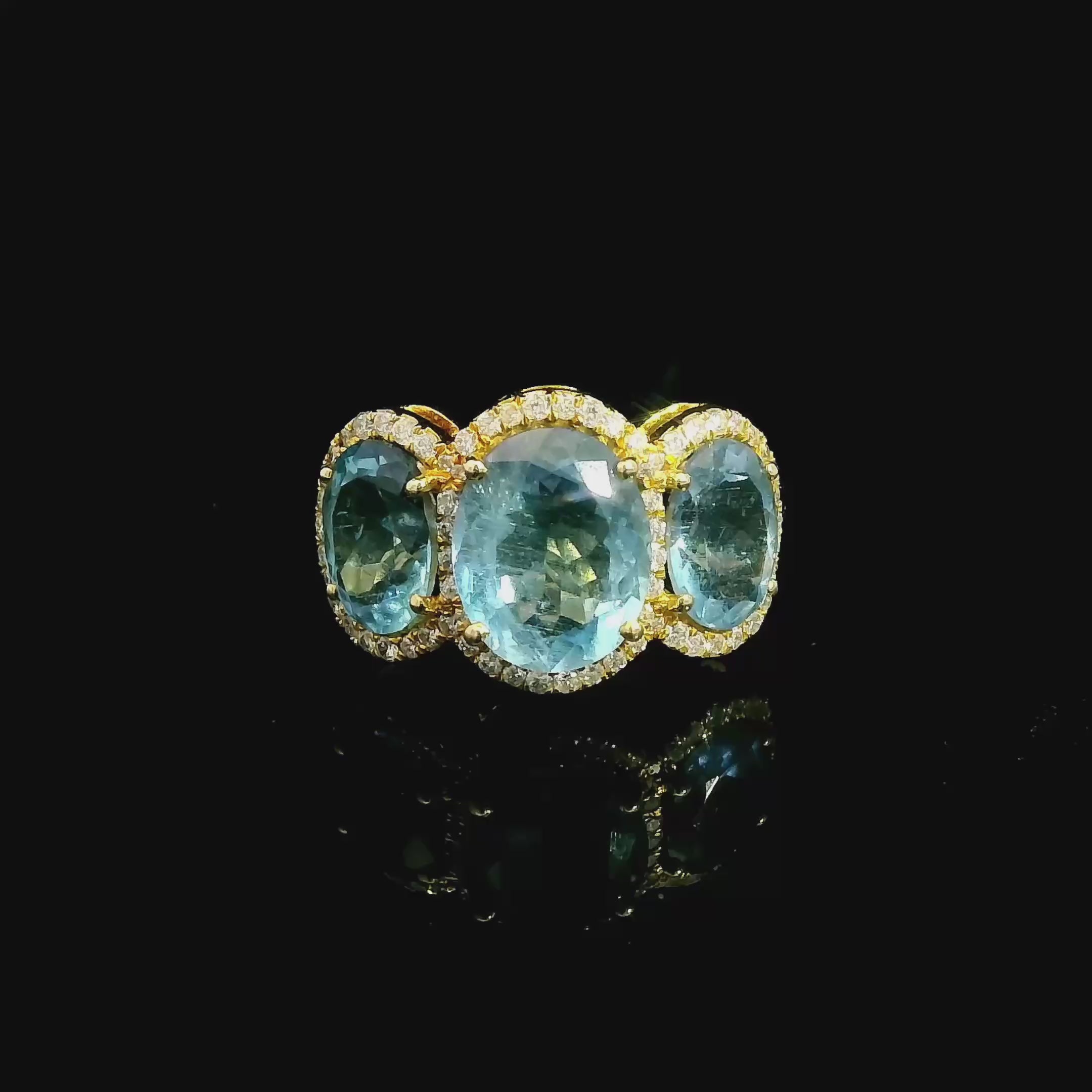 14K or 18K Gold Trio Aquamarine And Diamond Ring