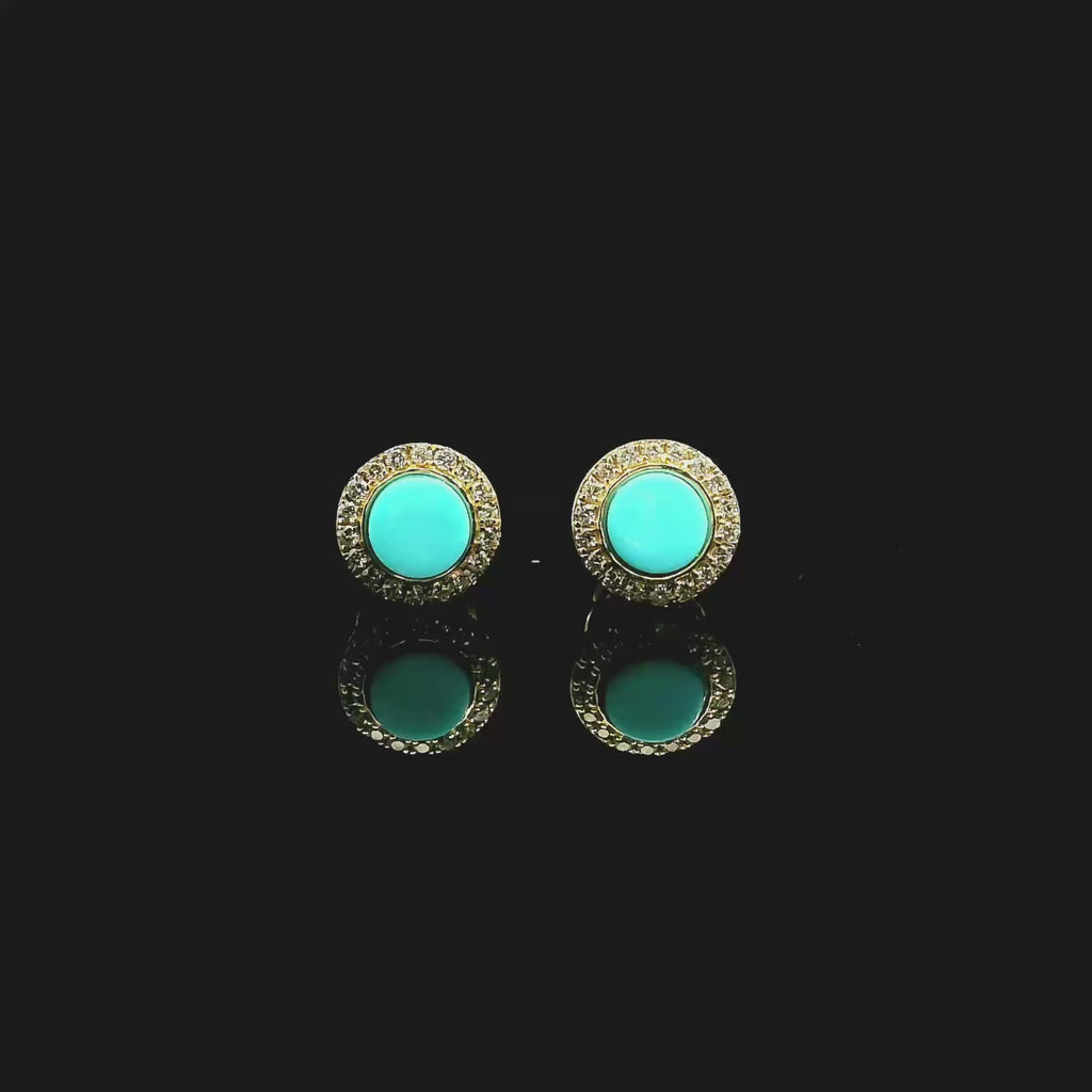 14K Gold Turquoise and Diamond Stud Earrings,