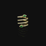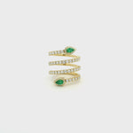18K Gold Stretch Gold Diamond And Emerald Wrap Around Ring