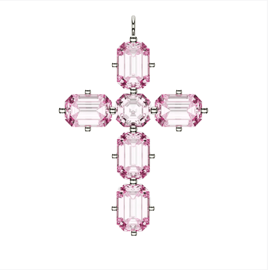 Pink Sapphire Emerald & Asscher Cut Cross in Solid 18K Gold