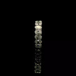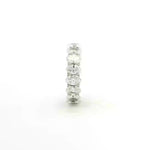 The eternity of pink sapphires spans the entire band. Wear these alone or stacked with multi-colors and/or other rings from our collection. We have varying sizes in stock, you can order to your specific size of sapphires or other colored gemstones too--most of our special order eternity bands can be completed with in a few days to five weeks.