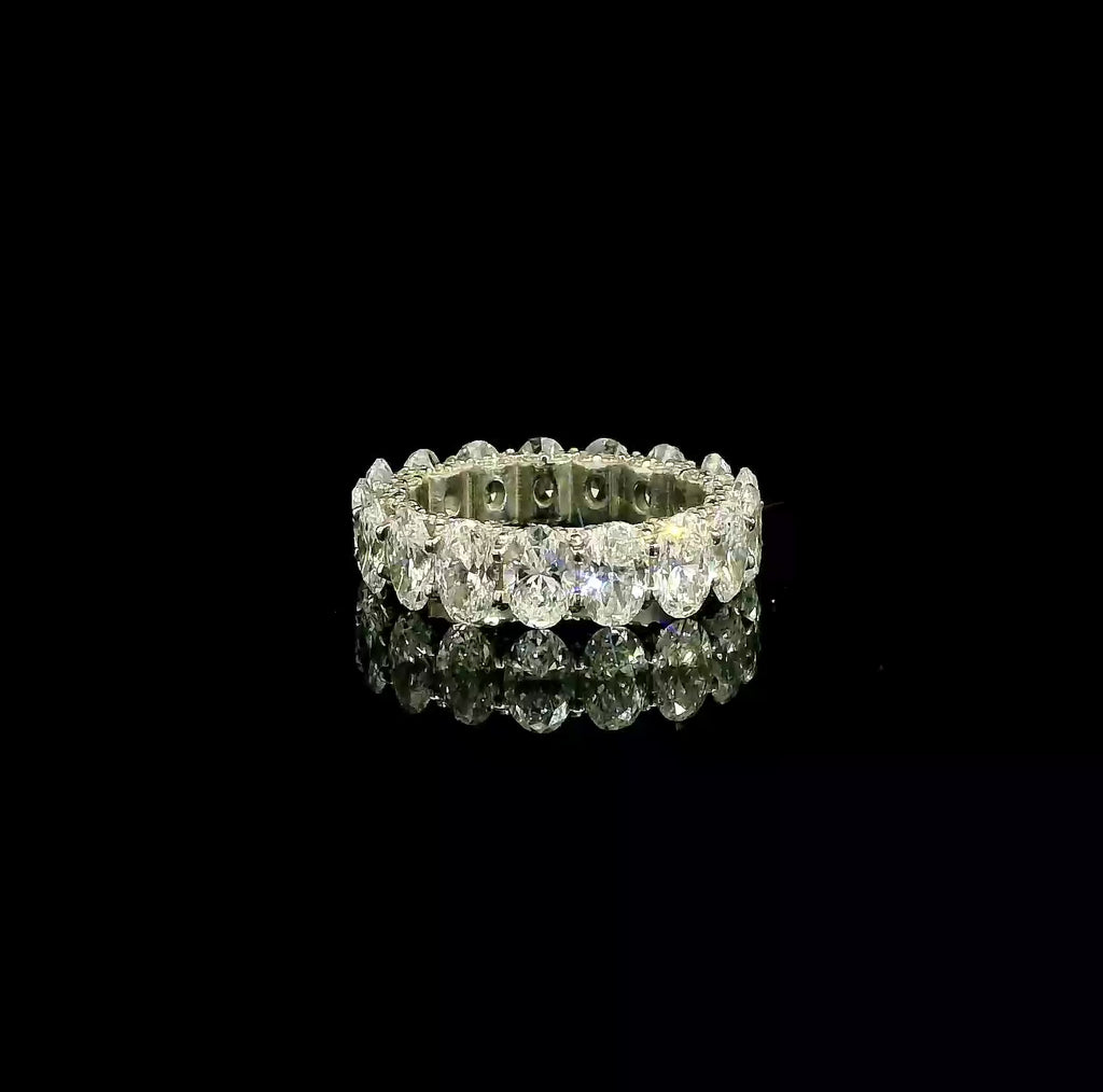 14K or 18K Gold Oval Diamond and Pave Diamond U Shape Eternity Band, Lab Grown