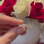 Eternity band of round white diamond rings available in 3 sizes of diamonds. 18K yellow, white, and rose gold are the perfect accent for any outfit. These chic rings can be worn on any finger, stacked with multiple colors of gold and seen on the latest runways as well as with a casual outfit on the go.