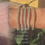 - 5.2-6.6 carats/3.0 mm stones, 52-66 diamonds (carat weight and number of diamonds varies with bracelet size/0.1 cts per diamond)