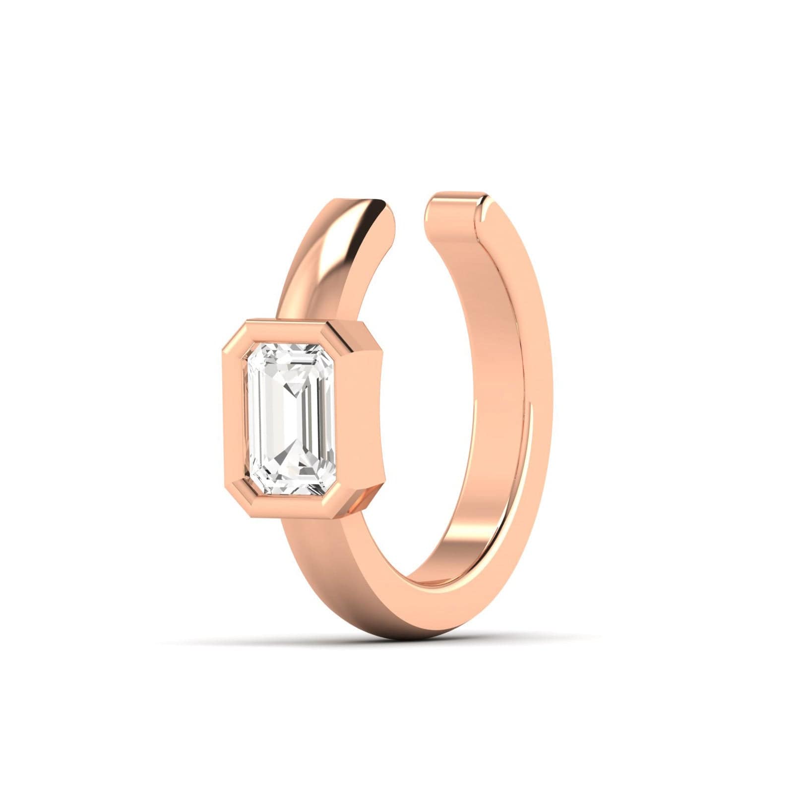 Our Latest Emerald Cut diamond Cuff hoop earring hand fabricated in yellow, white. or rose gold. Our latest timeless trend that our customers love for themselves or as special gifts for a friend or loved one.