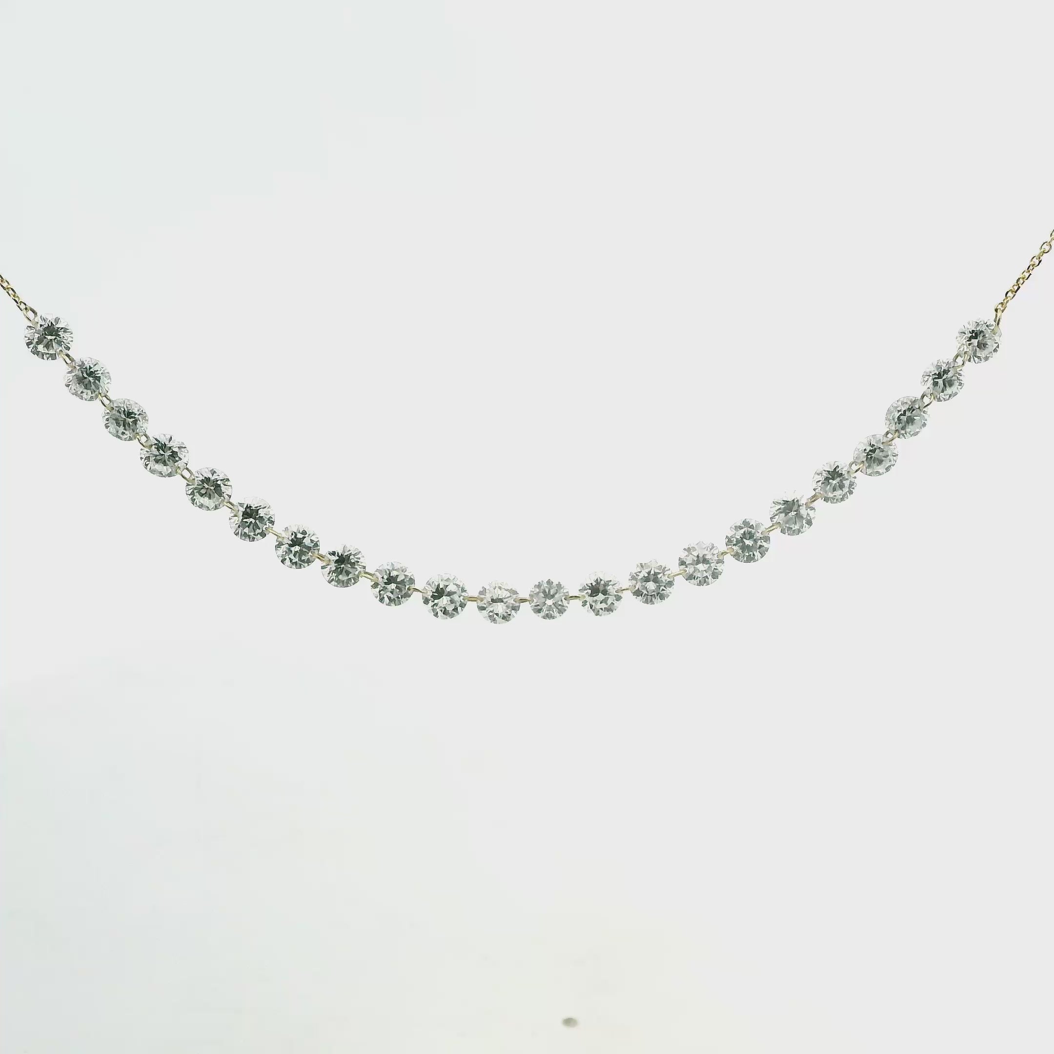 The diamond line of 21-22 round brilliant diamonds laser drilled and invisibly set with an adjustable 18K gold chain, 16"-18", handcrafted in 18K yellow, rose, or white gold. A beautiful necklace with timeless appeal that can be worn anywhere. It makes the perfect gift for yourself or someone you love.