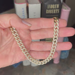 Micro-pave cuban chain with beautiful micro-pave diamonds covering the entire surface of half of the necklace with tightly woven Cuban links. Our designers absolute favorite creation that is light enough to wear with the pave on one half. The unique and timeless design of our necklace allows personal expression for the confident woman to express her femininity while being at the height of fashion.