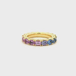 18K Gold East West Stretch & Stack Emerald Cut Blue and Pink Sapphire Eternity Ring