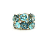 Our blue, baby blue, teal topaz and diamond cluster rings in 18K yellow, rose, and white gold are set with shimmering topaz and white diamonds.