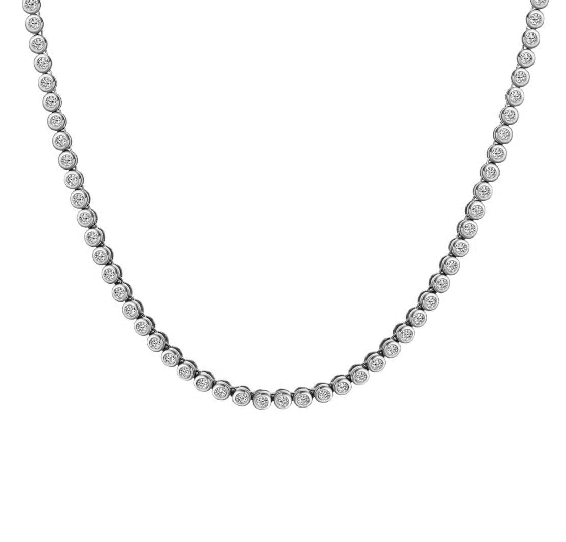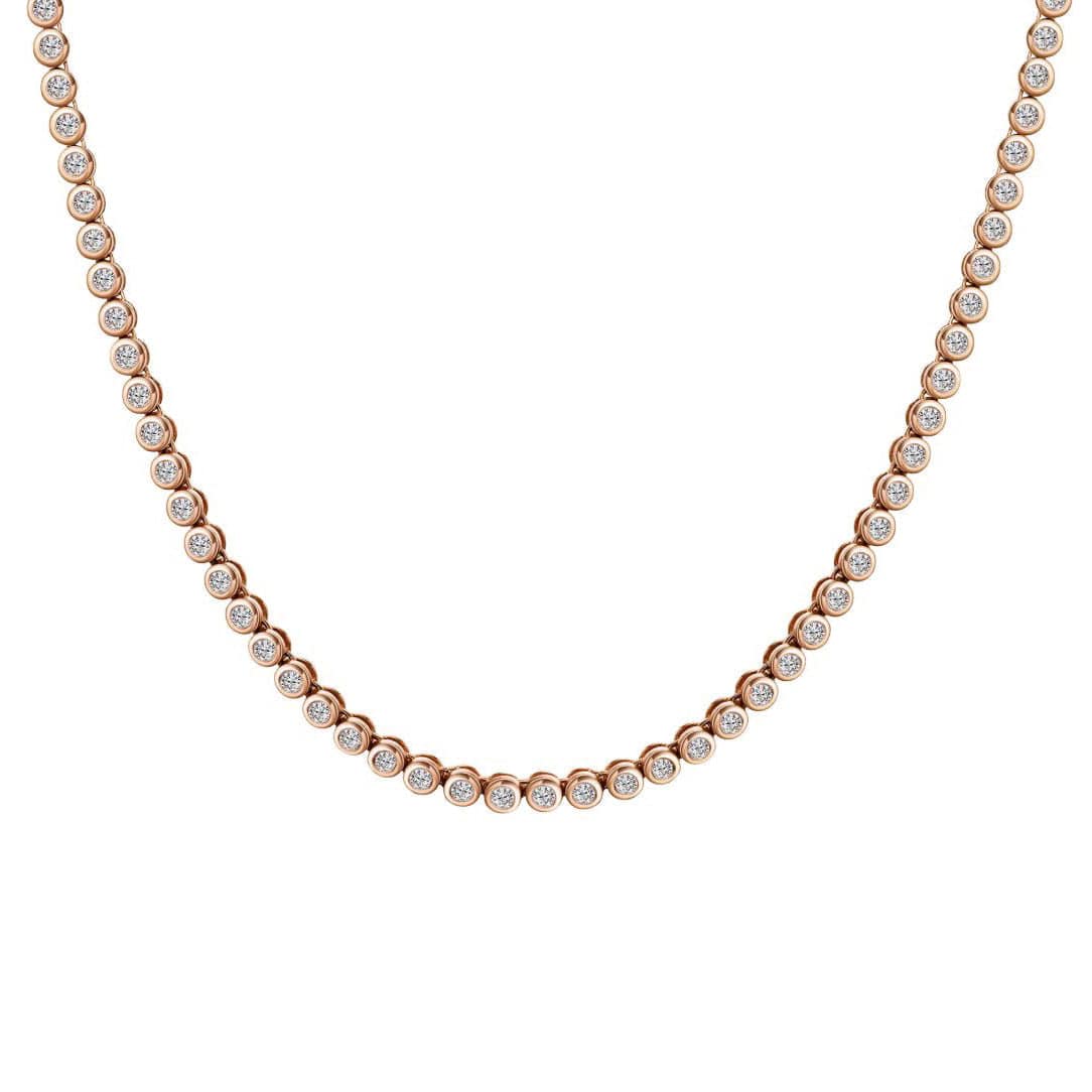 14K & 18K Gold Bezel Set Round Brilliant Diamond Necklace, Lab Grown, 7-7.5 Carats