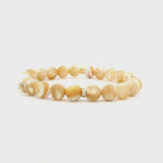 Our gorgeous golden mother of pearl beads with one gold and full diamond roundel. Golden beads in stretch 7" lengths, or custom sizes can be fabricated. The golden mother of pearl beads can be worn as one bracelet, stacked with many, or coupled with diamond tennis or your favorite chain.