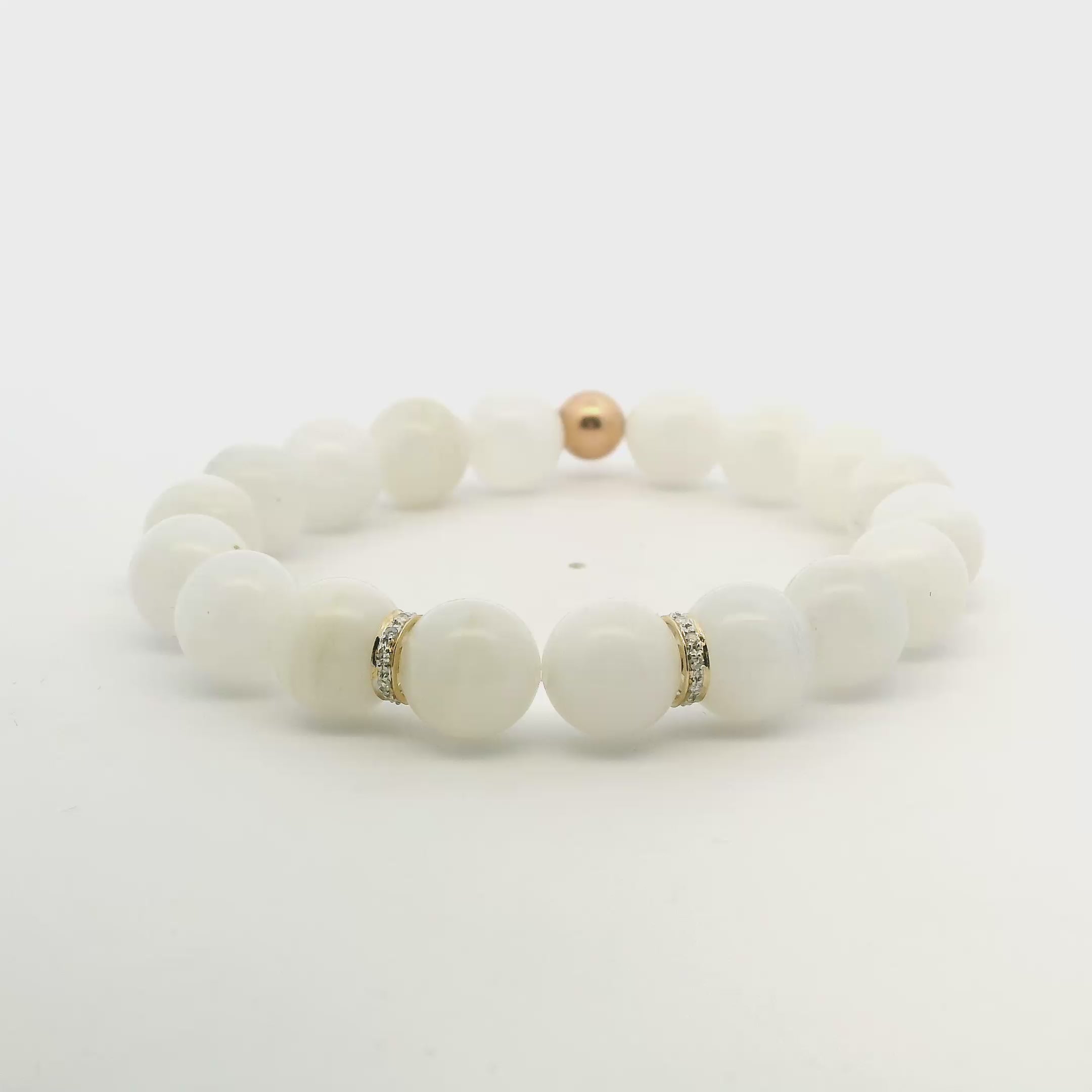 White Moonstone Beaded Bracelet, 2 Full Large Diamond Roundels