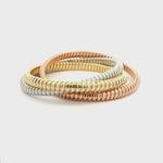 14K and 18K Tri-Color Gold Triple Rolling Ribbed Bracelet, 6mm