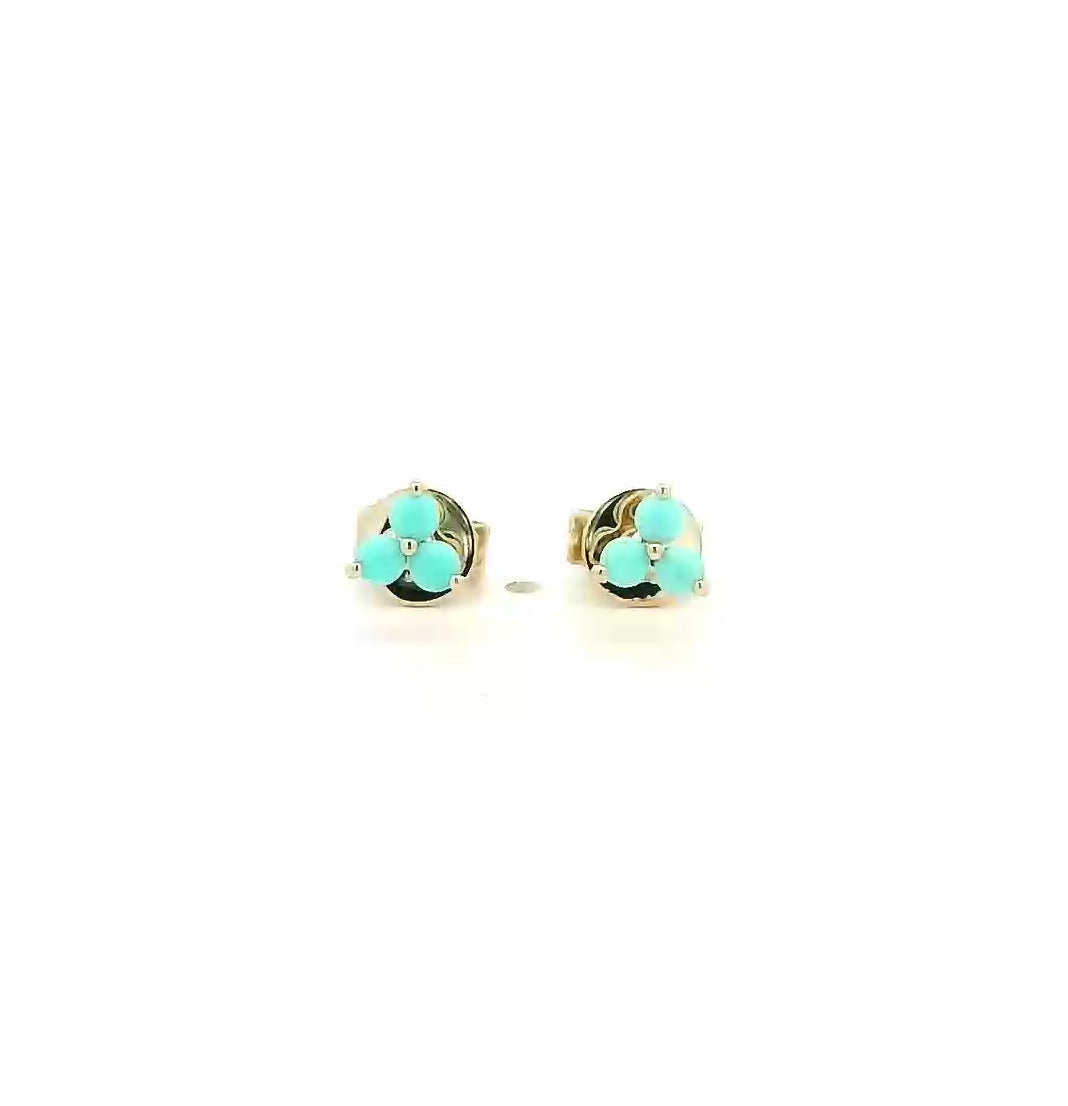 14K Gold Trio Turquoise Stud Earrings